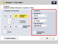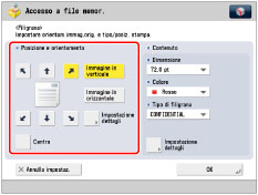 Se si imposta per due tra i modi [Numerazione pagine], [Numerazione serie] o [Stampa data] la stampa alla stessa posizione, viene visualizzato un messaggio che chiede conferma quando si preme