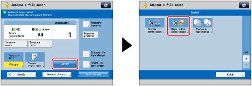 Non è possibile specificare le impostazioni del modo Regolazione colore selezione veloce quando si stampa un file in formato CMYK memorizzato in una mailbox.