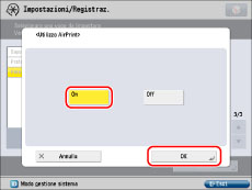 [Impostazioni/Registrazione] → [Impostazioni rete] in <Preferenze> → [Impostazioni stampa IPP] → [Utilizzo IPP]