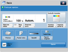 Premere per selezionare un modo [Opzioni]. [Finitura], [Fronte-retro], [Densità] e [Tipo di originale] sono impostazioni predefinite. |