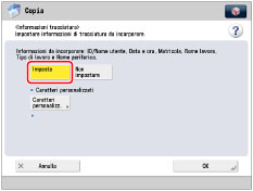 Per impostare un testo personalizzato, premere [Caratteri personalizz.] → immettere il testo → premere [OK].