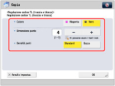 È possibile regolare le dimensioni, la densità e il colore dei punti del codice TL da includere nel documento.