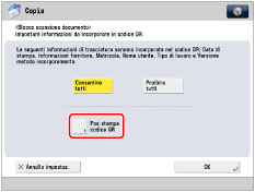 Prima di impostare questa funzione, l'amministratore deve impostare l'utilizzo del codice QR per il modo Blocco scansione documento. (Vedere "Selezione del codice per il blocco scansione documento (codice TL/codice QR)".)