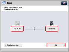 Premere [Più chiaro] o [Più scuro] per regolare la tonalità del colore nero → premere [OK].