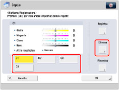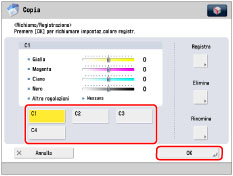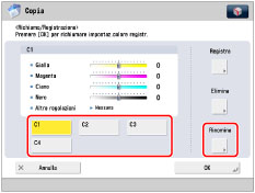 Se si preme [OK] senza immettere nessun carattere, il nome del tasto rimane quello attuale (predefinito da C1 a C4).