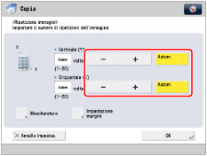 Utilizzare [-] o [+] per impostare il numero di volte in cui l'immagine dovrà essere ripetuta.