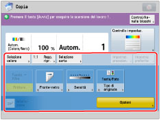 È possibile modificare o specificare le impostazioni per [Rapp. ripr.], [Fronte-retro], [Densità] e [Tipo di originale] prima di acquisire il gruppo di originali successivo (vale a dire tra un gruppo di originali e l'altro). Per modificare le impostazioni, premere [Variaz. impost.]. Selezionare il modo da modificare → dopo avere premuto [Cambia], modificare le impostazioni → premere [OK].