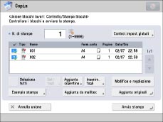 Per annullare il modo Unione blocchi lavori con altri modi di copia, premere [Annulla unione].