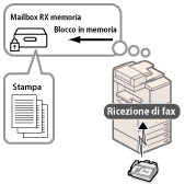 I fax ricevuti possono essere registrati nella mailbox RX memoria senza essere stampati. È possibile verificare le informazioni del mittente e il numero di pagine di un documento, prima di stamparlo o di inoltrarlo a un'altra destinazione.