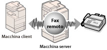 È possibile inviare/ricevere fax utilizzando la funzione fax remoto e una macchina server anche se la macchina non è collegata alla linea telefonica. Inoltre, se la macchina è collegata a una linea telefonica, è possibile utilizzarla come macchina server. Per ulteriori dettagli sull'utilizzo del Fax remoto TX, vedere