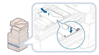 1. Tirare ed estrarre il cassetto dalla macchina tenendone i lati destro e sinistro con le mani. |
