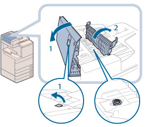 1. Tirare la leva → aprire il pannello dell'alimentatore. |