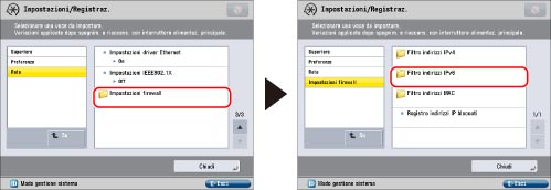 Se si tenta la trasmissione o la ricezione tra la periferica avente l'indirizzo/numero di porta IPv6 impostato per essere rifiutato, e la macchina, verrà generato un registro degli indirizzi IP ai quali è stato negato l'accesso. Per visualizzare il registro dei bloccati, "Controllo del registro di indirizzi IP bloccati".