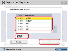 Selezionare un nome di servizio visualizzato → premere [Servizio On/Off] → premere [OK].