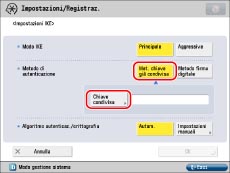 Premere [Met. chiave già condivisa] per <Metodo di autenticazione> → [Chiave condivisa].