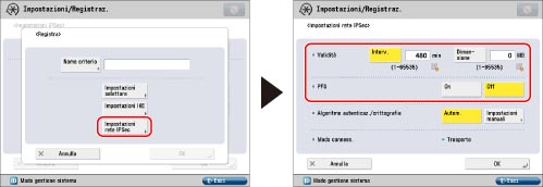 Premere [Off] per <Utilizzo IPSec> se non si desidera utilizzare IPSec.