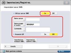 Premere [Off] per <Utilizzo server SMB> se non si desidera utilizzare il server SMB.