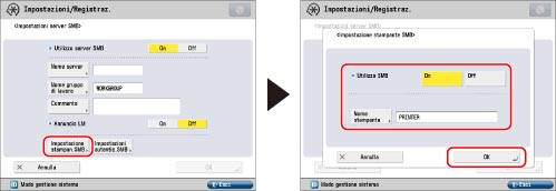 Premere [Impostazione stampan.SMB] → specificare le impostazioni della stampante SMB → premere [OK].