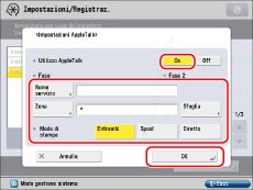 Premere [On] per <Utilizzo AppleTalk> → specificare le voci indicate di seguito → premere [OK].