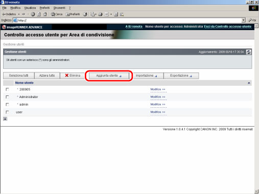 Premere → [Impostazioni funzione] → [Memorizzazione/Accesso a file] → [Impostazioni Area di condivisione] → [Gestione autenticazione].