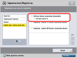 Selezione del codice per il Blocco scansione documento