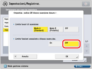 Specifica delle impostazioni operative di blocco scansione documento (codice QR)