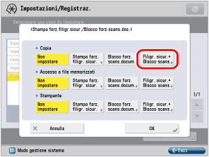 Impostazione del modo Blocco forzato scansione documento e Filigrana di sicurezza