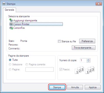 Dal menu [Archivio] del software applicativo utilizzato per la stampa del documento → selezionare [Stampa].