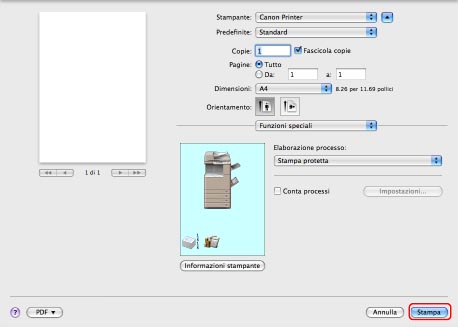 Selezionare la stampante da utilizzare → selezionare [Funzioni speciali].