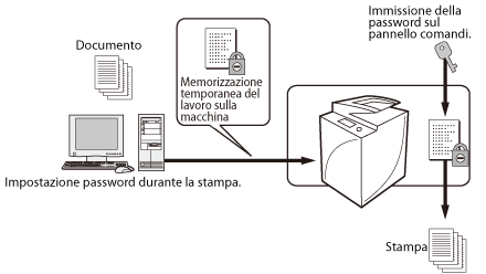 Per eseguire una stampa dalla macchina, è necessario immettere nuovamente la password. Dopo aver impostato la password per il documento, si consiglia di annotarla e conservarla in un luogo sicuro.