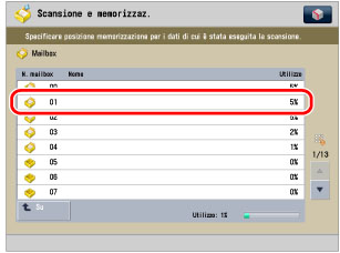 Premere [Mailbox] → selezionare la Mailbox in cui si desidera memorizzare il documento.