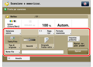 Posizionare gli originali nell'alimentatore o sul vetro di lettura → premere [Scansione].