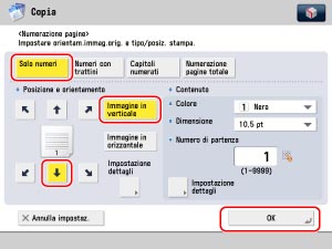 Selezionare [Solo numeri] → [Immagine in verticale] → [] → premere [OK] → [Chiudi].