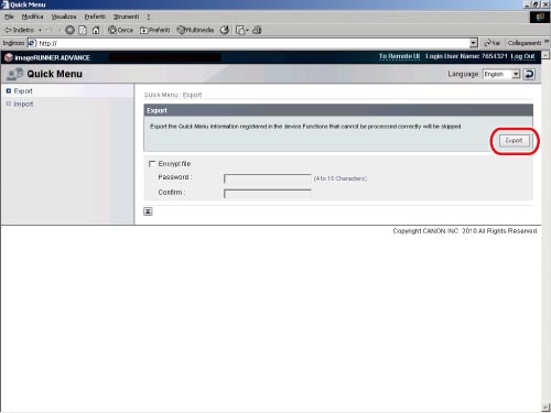 Ad esempio, se l'indirizzo IP della macchina è "192.168.11.55," digitare l'URL "http://192.168.11.55:8000/custommenu".