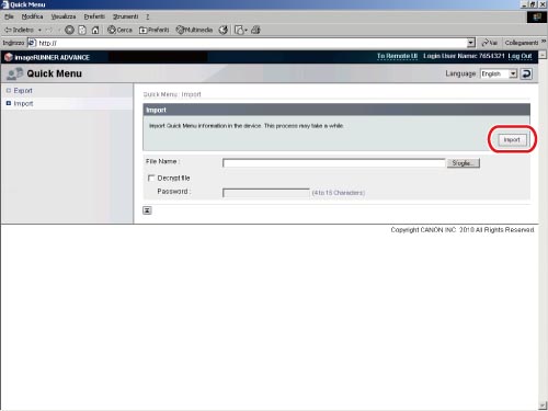 Fare clic su [Importa] per visualizzare la pagina di importazione.