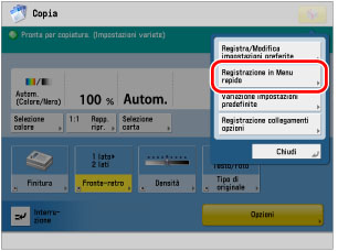 Registrando le impostazioni delle funzioni utilizzate di frequente, come Copia, Scansione e invio e Scansione e memorizzazione nel Menu rapido, è possibile utilizzare tali impostazioni anche su un'altra macchina.