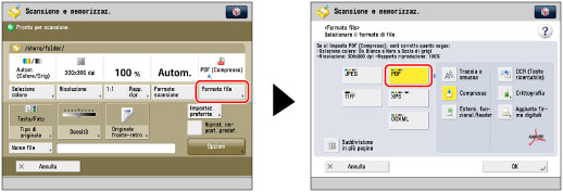 Se l'opzione [Da formato PDF a formato PDF/A] è impostata su 'On' (Vedere "Formattazione di file PDF in PDF/A".)