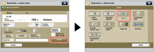 Questa impostazione riduce due originali a un lato o un originale in fronte-retro per riprodurli su un lato di un foglio.