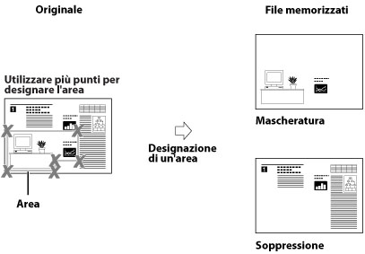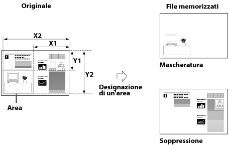 Consente di memorizzare l'originale sopprimendo il contenuto dell'area designata.