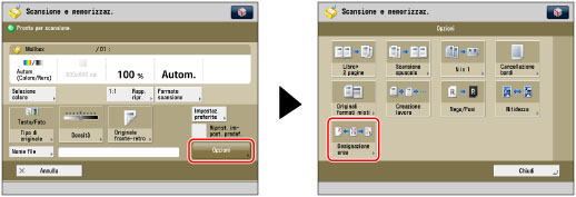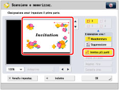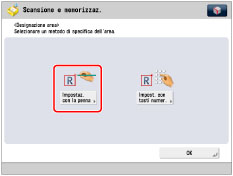Non è possibile utilizzare il modo Designazione area per immagini già memorizzate in una mailbox. Questo modo è disponibile solo quando si acquisisce un'immagine per la prima volta mediante la funzione Mailbox.