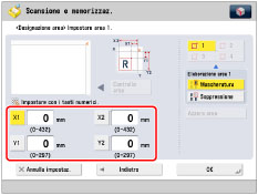 Se si desidera utilizzare impostazioni diverse per aree diverse, selezionare l'area premendo il relativo tasto → selezionare [Mascheratura] o [Soppressione].
