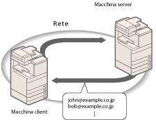 La macchina può accedere a un server in rete quale macchina client in grado di cercare/specificare le destinazioni dalla rubrica della macchina server.