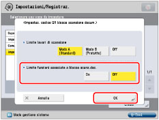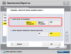Se si seleziona [Modo B (Protetto)], tutti i documenti tranne gli originali che hanno un codice QR con l'impostazione [Consentire tutti] vengono rifiutati. In questo caso, non è possibile copiare documenti come ad esempio note scritte a mano.