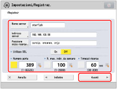 Specificare ciascuna impostazione → selezionare [Avanti].