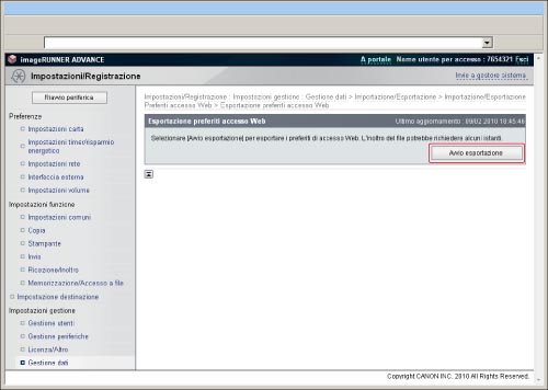Fare clic su [Preferiti accesso Web] per <Importa/Esporta individualmente> → [Esportazione...].
