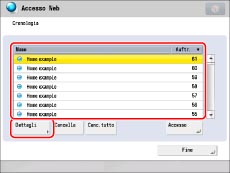 Impostando [ID div/Nome utente con cronolog.] su 'On' in Impostazioni, vengono visualizzati anche l'ID divisione o il nome utente. (Vedere "Impostazioni relative a informativa e normativa sulla privacy".)