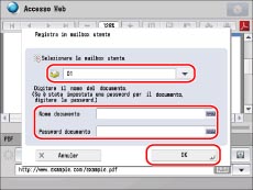 Se si desidera immettere la Password documento, immettere la password corretta. Se la password immessa è errata, il file non viene memorizzato nella mailbox.