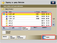 Wählen Sie die gewünschte Datei → Berühren Sie die Taste [Druck].