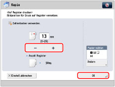 Die Anzahl der Register können Sie in [Einstellungen Papier] ändern. (Vgl. Abschnitt "Speichern des Papierformats und Papiertyps für ein Papierzufuhrmedium".)