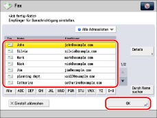Wählen Sie den Empfänger für die Job fertig-Notiz → Berühren Sie die Taste [OK].